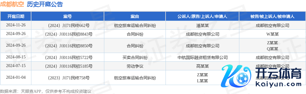 本站音问,凭据天眼查APP披露,近日公布了一则成王人航空有限公司手脚被告/被上诉东谈主的开庭公告,详备本体如下: