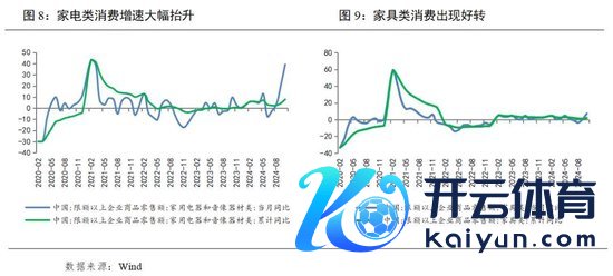 两轮以旧换新成效有所各别。3-4月第一轮以旧换新计谋推出后,5月社零环比增速反弹后又转向回落,汽车、家电、居品等同比增速亦随之下滑。加力计谋出台后,计谋因循领域零卖额同比增速较着改善,家电类次月杀青同比转正,增速节节飞腾,汽车、居品类9月同比转正且增速上行。