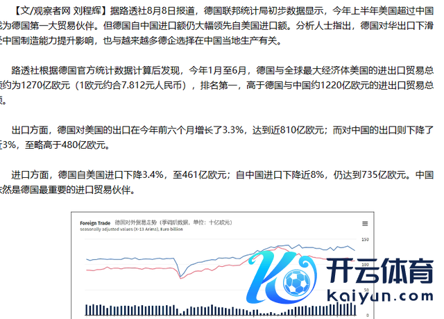 【1】德政府数据深远:上半年好意思国超中国成德国最大交易伙伴,但对德出口仍逊于中国