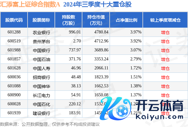 汇添富上证概括指数A为指数型-股票基金,把柄最新一期基金季报显现,该基金钞票建设:股票占净值比94.8%,债券占净值比0.48%,现款占净值比4.64%。基金十大重仓股如下: