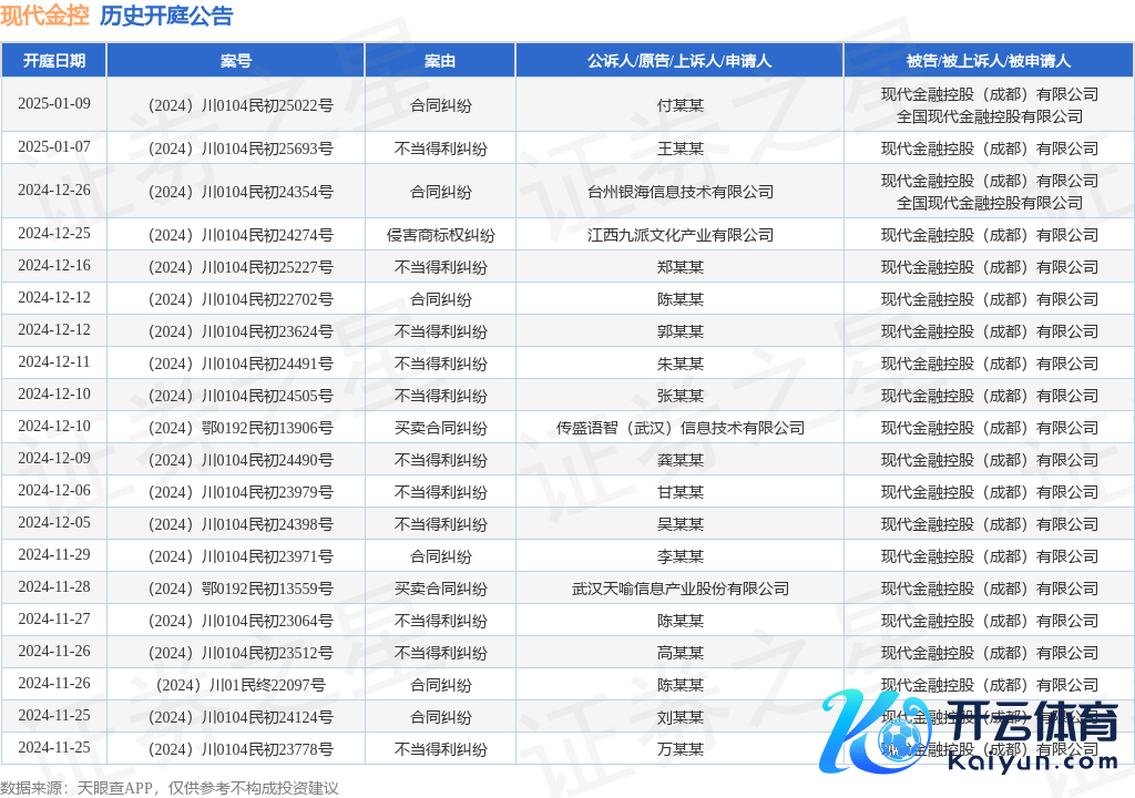 本站音尘,笔据天眼查APP泄漏,近日公布了一则当代金融控股(成王人)有限公司手脚被告/被上诉东说念主的开庭公告,珍摄本色如下: