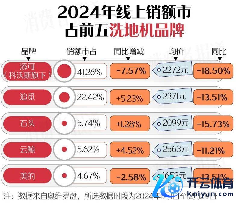 从品牌层面来看,科沃斯旗下的添可独占鳌头,不外市占下滑赫然。CR4品牌中的另外三个品牌追觅、石头、云鲸发起追逐之势,它们的均价也与添可附进。跟着越来越多品牌参与,洗地机行业打起了价钱战,热销品牌均价数据分解2024年洗地机有赫然降价趋势。