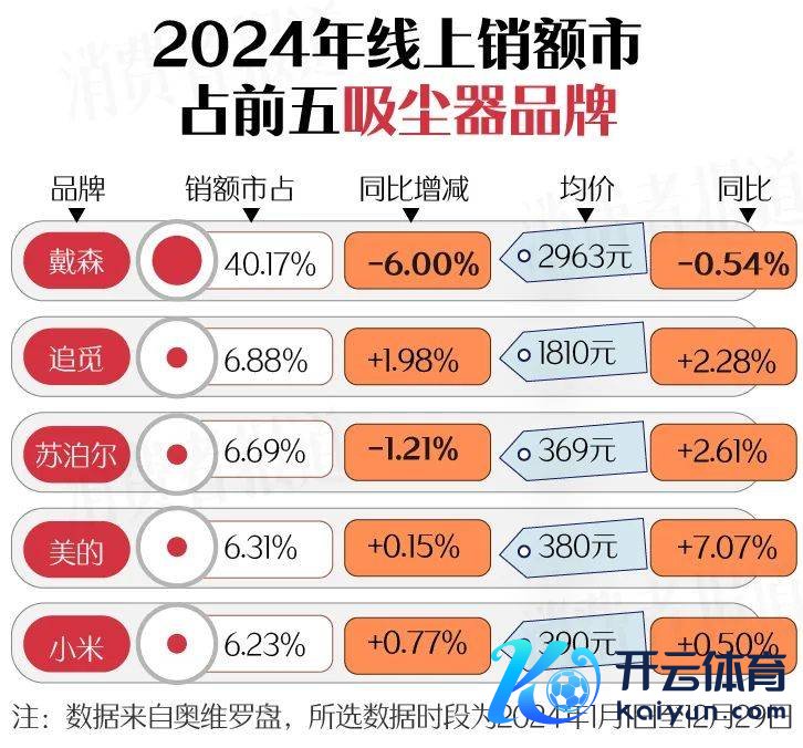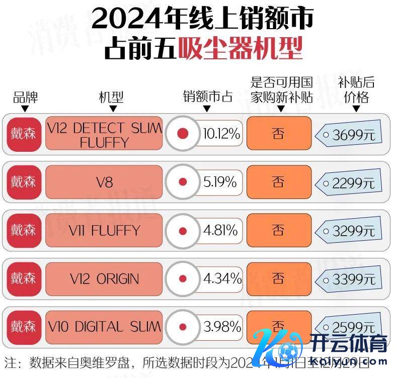 戴森V12 DETECT SLIM FLUFFY成为2024年年度销额冠军,该款吸尘器的市占率为4.02%。而况排行前五的吸尘器都来自戴森,悉数这个词品牌在吸尘器限度展现出统治力。
