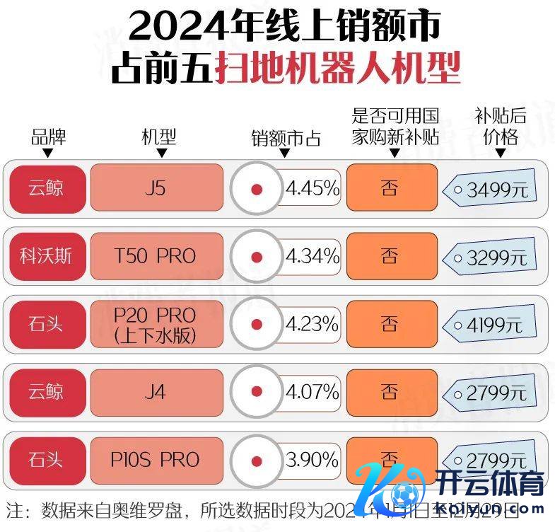云鲸J5成为2024年年度销额冠军,该款扫地机器东谈主的市占率为4.45%。