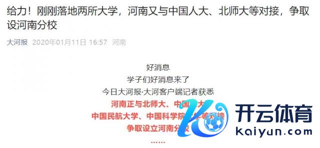 早在 2020 年,河南就和北京师范大学、中国东说念主民大学、中国民航大学和中科学院大学等名校对接,但愿其能够在河南建树分校。