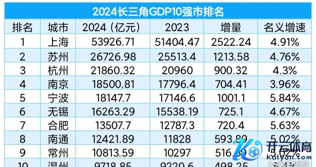 长三角又一次“出圈”了。这片包括上海、江苏、浙江和安徽在内的中国经济中枢区域,2025年的GDP总量还是冲到33.17万亿元,占寰宇的24.6%。这样亮眼的收获单背后,长三角的城市排行却激发了不小的扣问。此次排行中,苏州以近5000亿元的差距体育游戏app平台,稳稳甩开杭州坐上了“老二”的宝座;安徽的省会合肥,靠着5.63%的增速,把南通远远甩在死后。这些数字背后到底发生了什么?