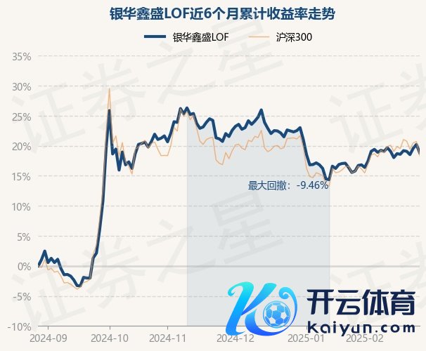 本站音书,2月28日,银华鑫盛LOF最新单元净值为2.169元,累计净值为2.169元,较前一交游日下降1.14%。历史数据清楚该基金近1个月高潮1.74%,近3个月下降2.21%,近6个月高潮18.85%亚bo体育网,近1年高潮9.82%。该基金近6个月的累计收益率走势如下图: