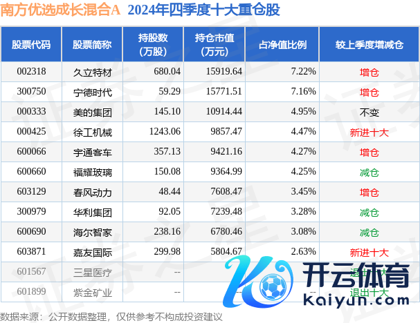 南边优选成长夹杂A为夹杂型-生动基金,凭据最新一期基金季报表露,该基金财富成就:股票占净值比77.13%,债券占净值比20.73%,现款占净值比2.77%。基金十大重仓股如下: