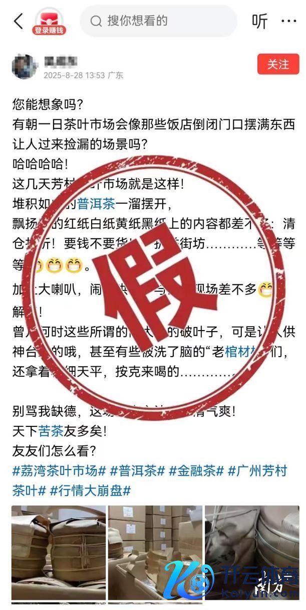 普洱茶“要钱不要货、一折益街坊”?近日,一则芳村茶叶商场多数普洱茶清仓大甩卖的信息在收集上平方传播,激发烧议。8月29日,南边农村报记者实地造访发现,网传信息空幻,商场举座运转巩固,商户计算秩序正常。部分商铺关闭因放假、搬迁、战术治愈或计算不善所致,并非网传所谓“行情大崩盘”。笃信>>>